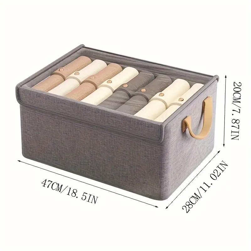 👀 غطاء شفاف: تشوف شنو داخل بلا ما تحل 🧵 قماش متين وعالي الجودة 🧺 سعة كبيرة: ملابس، أغطية، سراويل، مناشف… 🧳 قابل للطي: إلى ما محتاجوش كتطويه بسهولة 🛡️ حماية من الغبار والرطوبة 🖐️ مقابض جانبية باش تهزو بسهولة